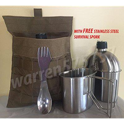 Stainless steel canteen with cup and vented lid with new stainless steel stove foldable and surplus g i. In government issue gear and apparel from the us army navy marine corps and air force. We also carry commercial products such as backpacks knives. There are no usa made stainless steel bottles at this time.