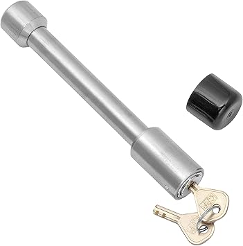 It includes a push button lock mechanism which makes it easy to secure. Choose from our selection of steel hitch pins including clevis pins quick release pins and more. Trailer hitch lock 5 8 hitch pin tow receiver lock brass core locking mechanism 3 1 2 usable length heavy duty fits class iii iv v hitches master lock receiver lock stainless steel barbell receiver lock fits 5 8 in. The pin itself may be made of stainless steel but the ball bearing that keep the lock cap in place are not and will rust after being exposed to the elements.