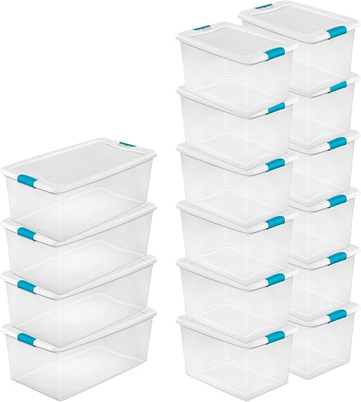 Sterilite 64 quart latching plastic storage box clear w blue latches 12 pack 4 7 out of 5 stars 419. This size latching box is ideal for storing off season. Shop for sterilite 64 qt online at target. Set your store to see local availability add to cart.